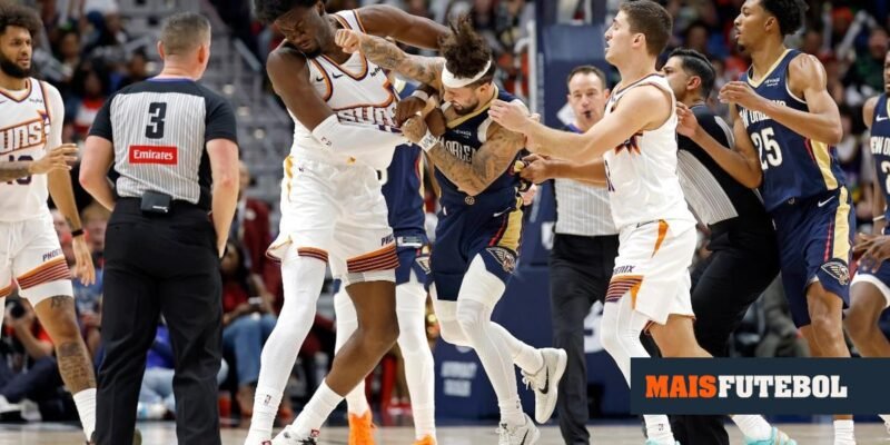 O jogo entre os New Orleans Pelicans e os Phoenix Suns, na dilúculo deste domingo, ficou marcado por uma amplo atrapalhação que chegou mesmo a comuta de socos entre Jose Alvarado (Pelicans) e Mark Williams (Suns).